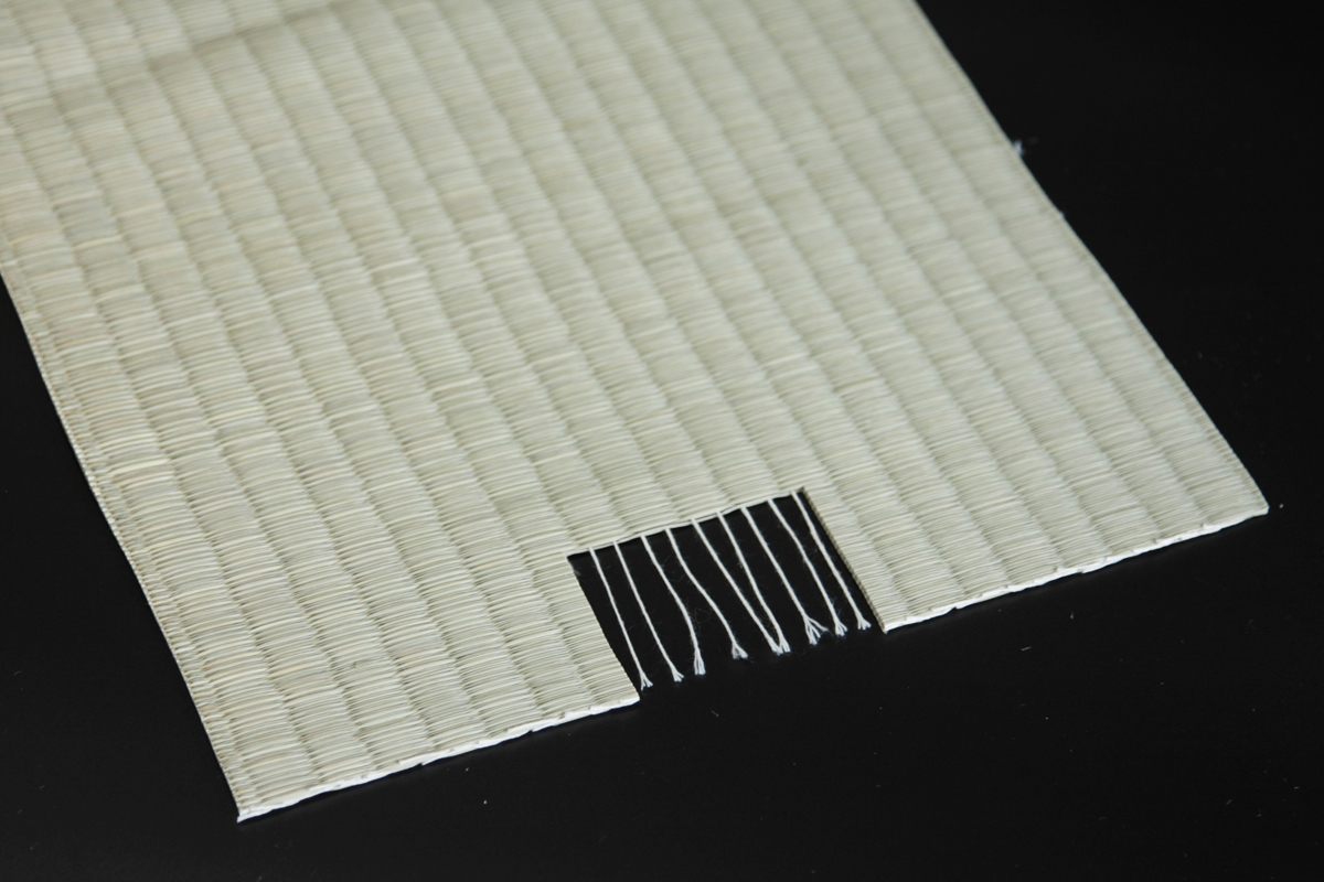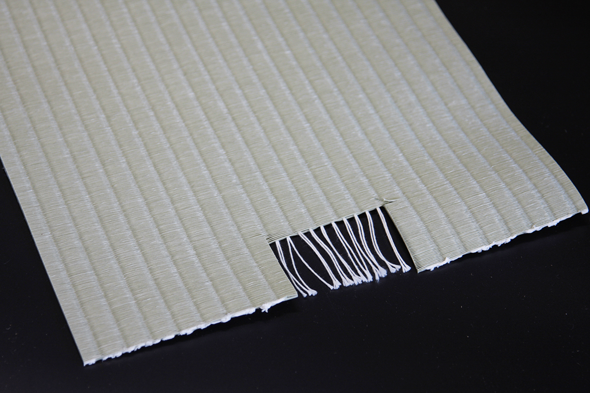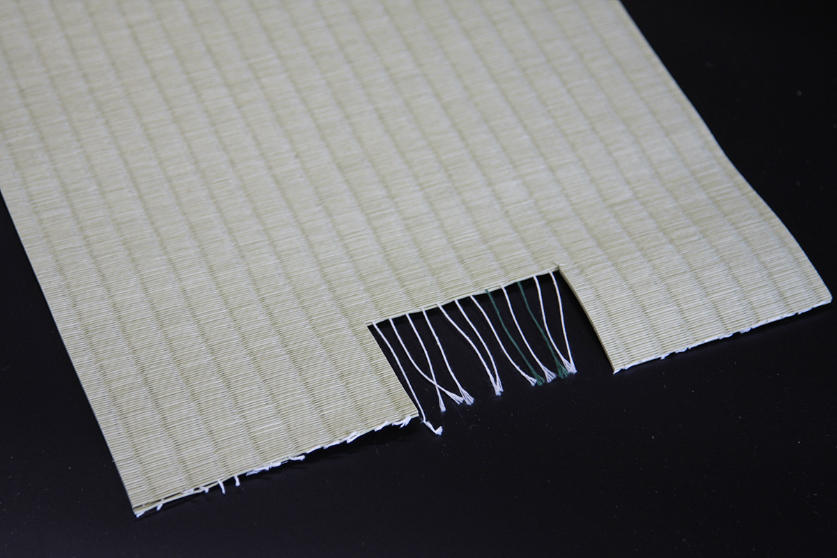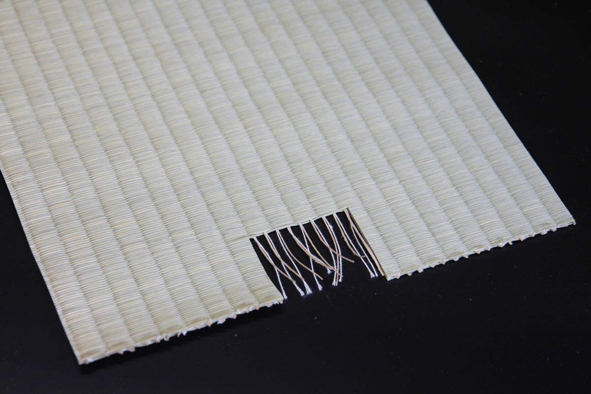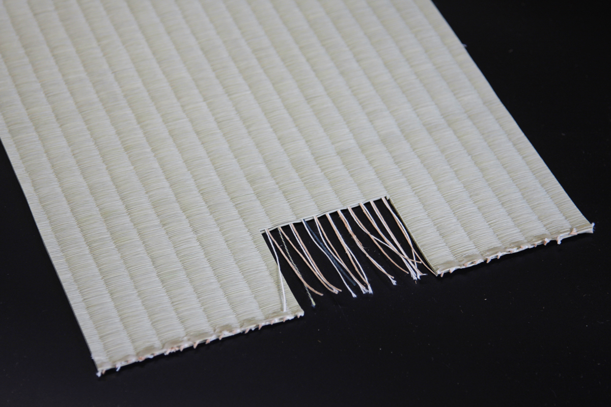 機械すき和紙をこよりにして、樹脂コーティング。イ草に比べて、カビの心配、色あせも少なくメンテナンスも簡単。