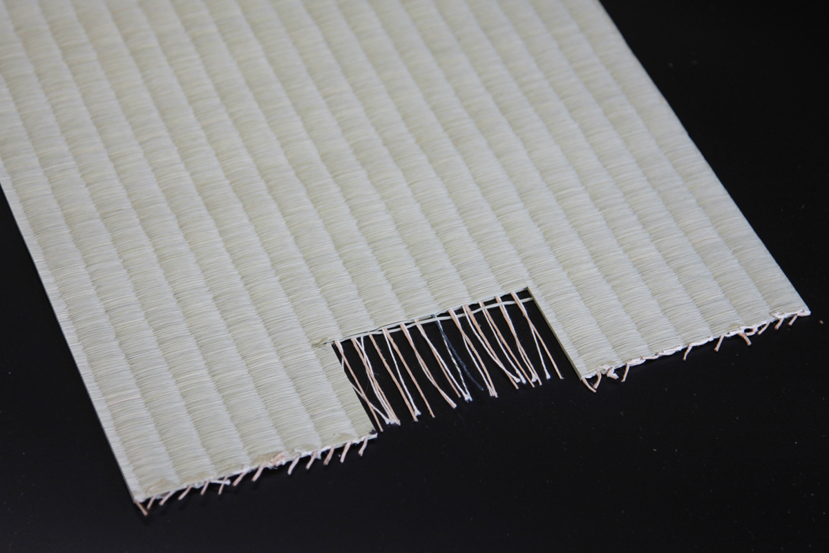 当店では必ず畳表の端は糸、エッヂメルターで留めております。麻糸から糸まで丁寧にしっかりと留めております。その為!畳表がバラけたりしわになったり、よれたりがありません
