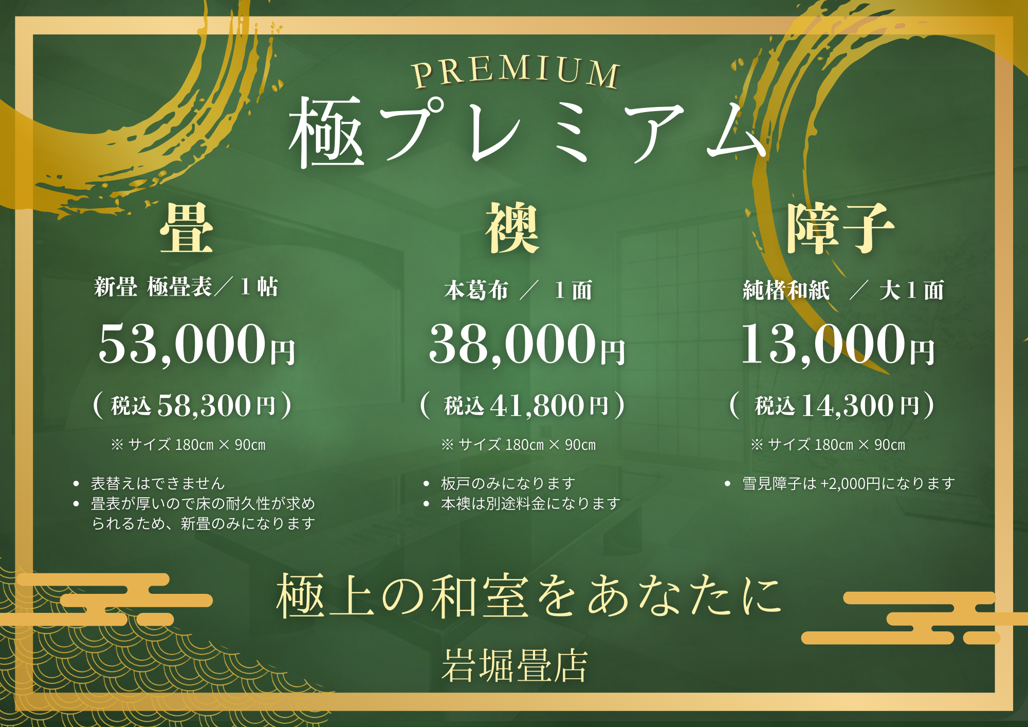 ※畳のサイズが五八間(178cm×89cm以下)の価格です。本間(191cm×95.5cm)などの場合は別途お問い合わせください。